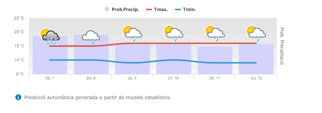 Tant dijous com divendres, les temperatures es frenaran a la capital del país i la màxima no superarà els 16°. La mínima se situarà entre els 13 o 14º.