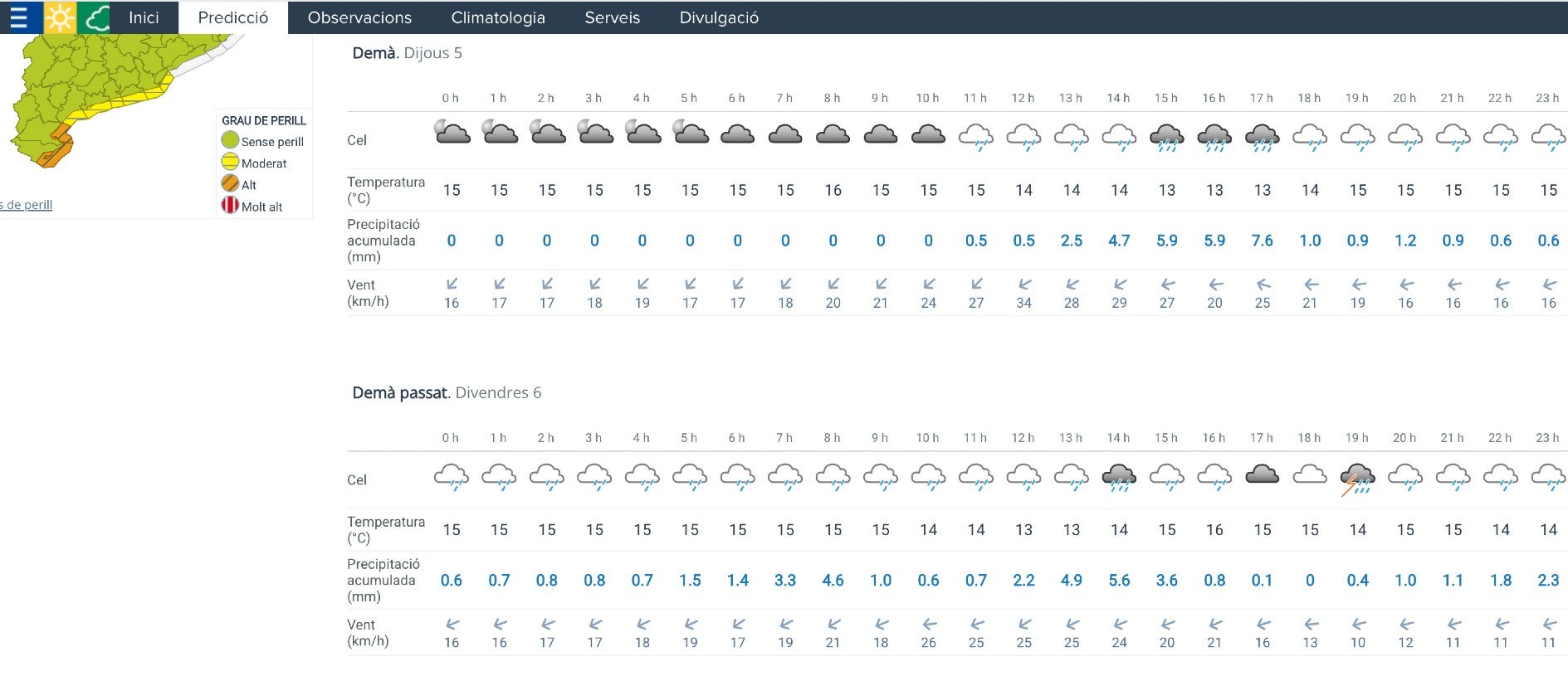 A partir de demà a la tarda es preveu acumulació de pluja superior als 100l/24h al terç nord-est de Catalunya.