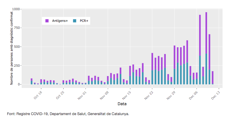 L’elevat nombre de contagis en aquests dos dies està vinculat amb l’efecte rebot provocat pel pont de la Puríssima. Els dos rècords s’han registrat l’endemà d’un festiu –dilluns i dimecres era festa–, dies en què es fan menys PCR i testos d’antígens perquè la gent no va tant a l’hospital. L’efecte pont es confirma amb l’evolució dels casos setmanals acumulats, ja que tant dilluns com dimecres van retrocedir després d’haver pujat ininterrompudament durant un mes i mig. Tot i la distorsió estadística del pont, els experts avisen que la situació és “preocupant” i demanen extremar precaucions.