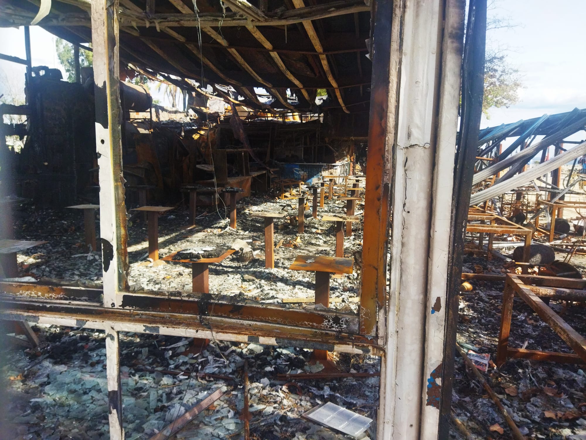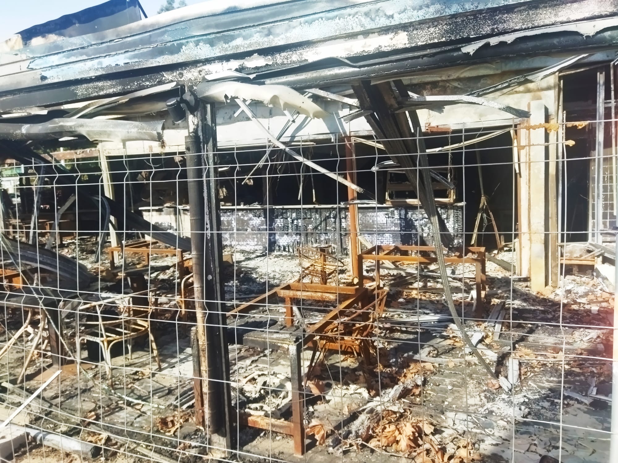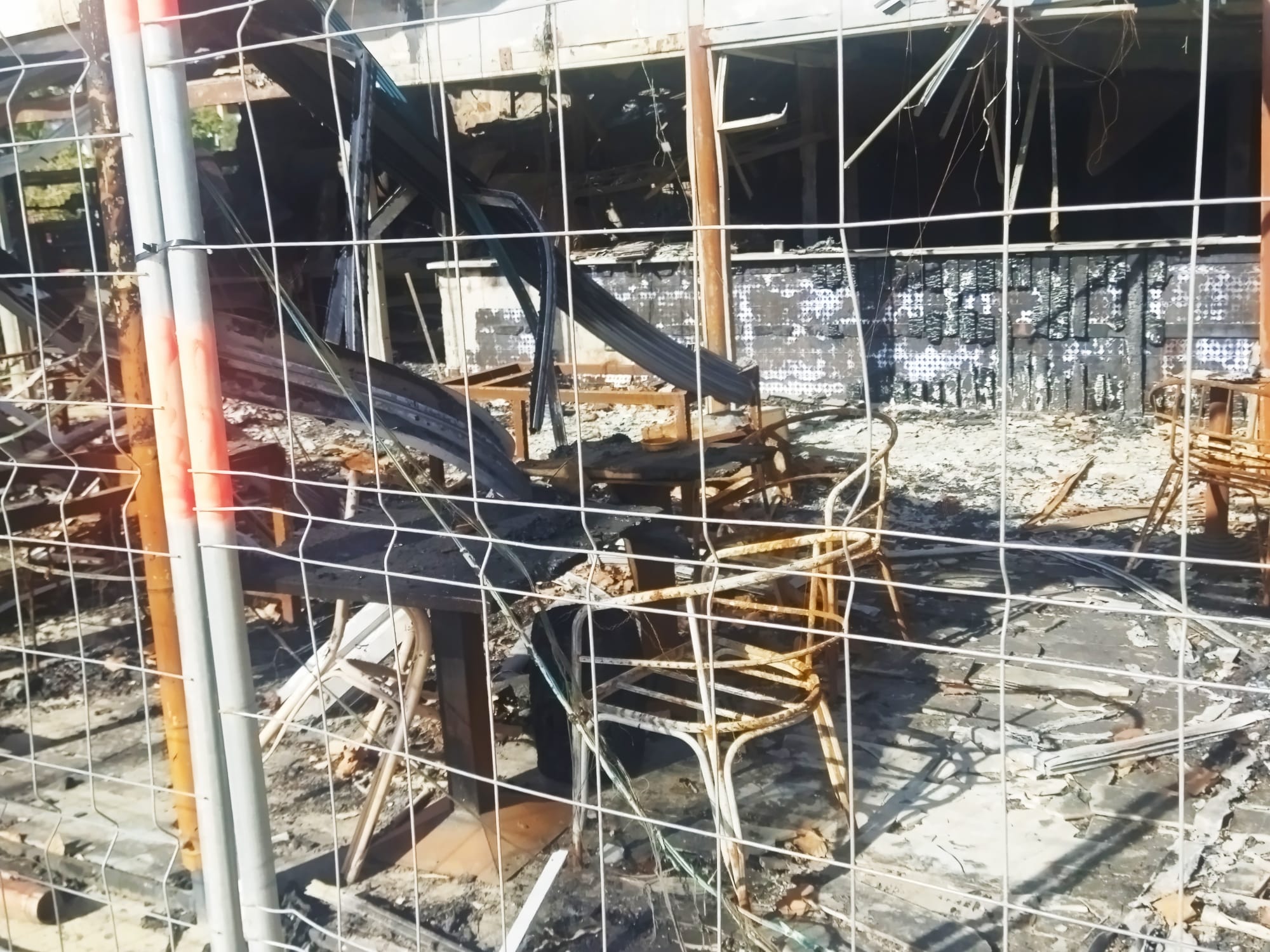 Dins del que queda de Las Sardinitas, un establiment del grup Moncho’s, no queda res que se salvés del foc. Cadires, taules, la barra i la resta d’elements del negoci van ser devorats per les flames i només es va mantenir en peu l’estructura.