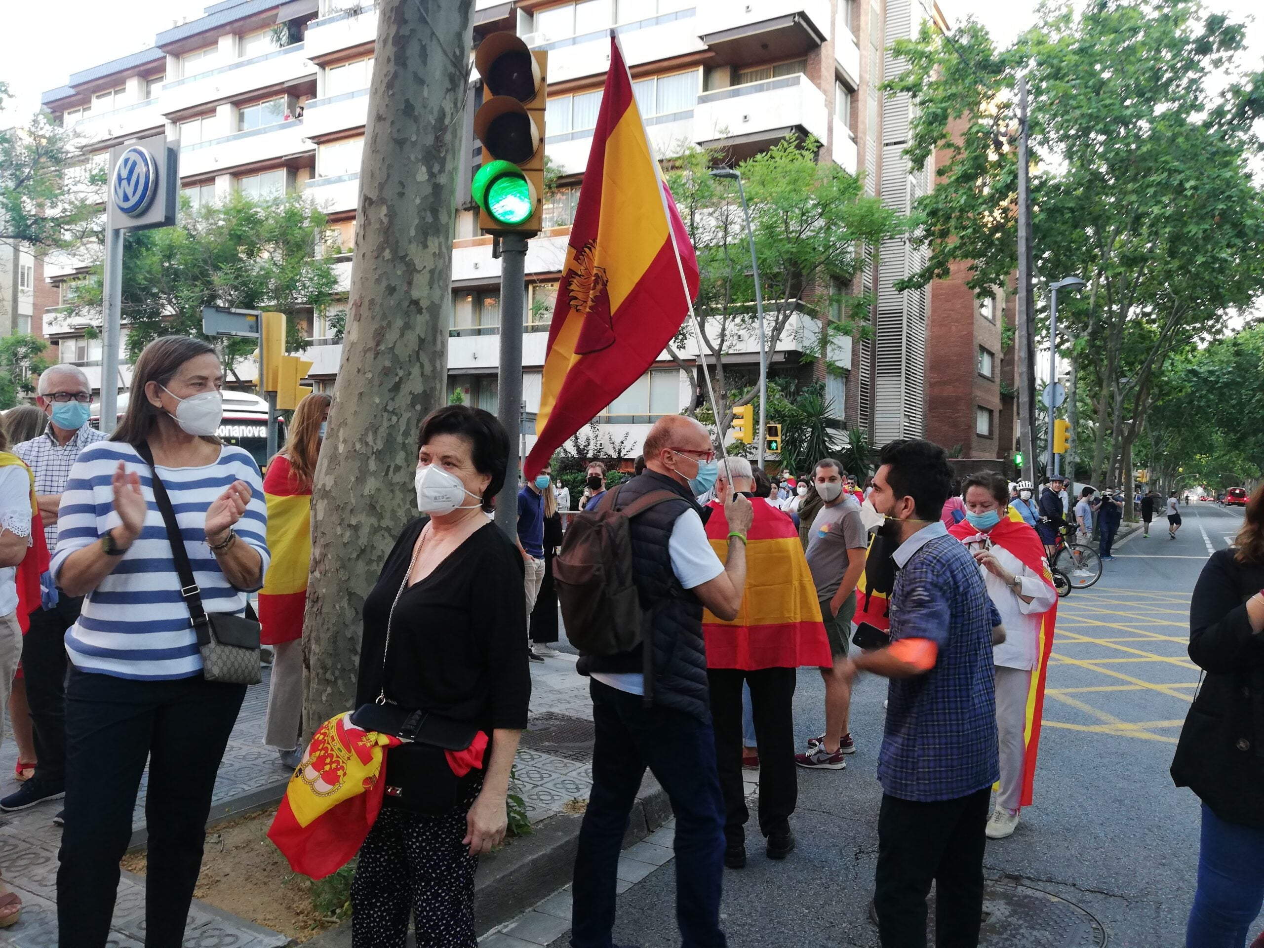 La manifestació espanyolista d’avui al passeig de la Bonanova amb carrer Ganduxer, convocada a la mateixa hora que una protesta de col·lectius anticapitalistes que tenia lloc a quatre minuts a peu, ha començat amb frustració. “¡Somos 4 gatos!”, es queixava l’Alicia, que havia acudit a la concentració espanyolista contra la gestió del govern de Pedro Sánchez.