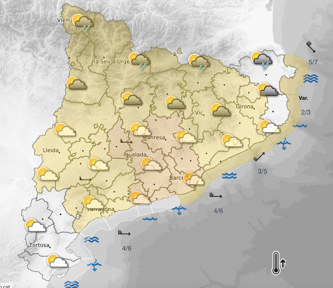 El Meteocat ha activat l’avís per fortes ventades a pràcticament tot el país. De matinada, el vent de component oest ha bufat amb força a la Plana de Vic i a l’interior de Catalunya, però des de primera hora del matí ja afecta tot el territori. Les zones amb risc són la costa de Barcelona, l’àrea metropolitana i l’altiplà central. Estan en alerta taronja el Baix Penedès, l’Alt Penedès, el Garraf, el Baix Llobregat, el Barcelonès, el Vallès Occidental, el Bages, l’Anoia i la Segarra.