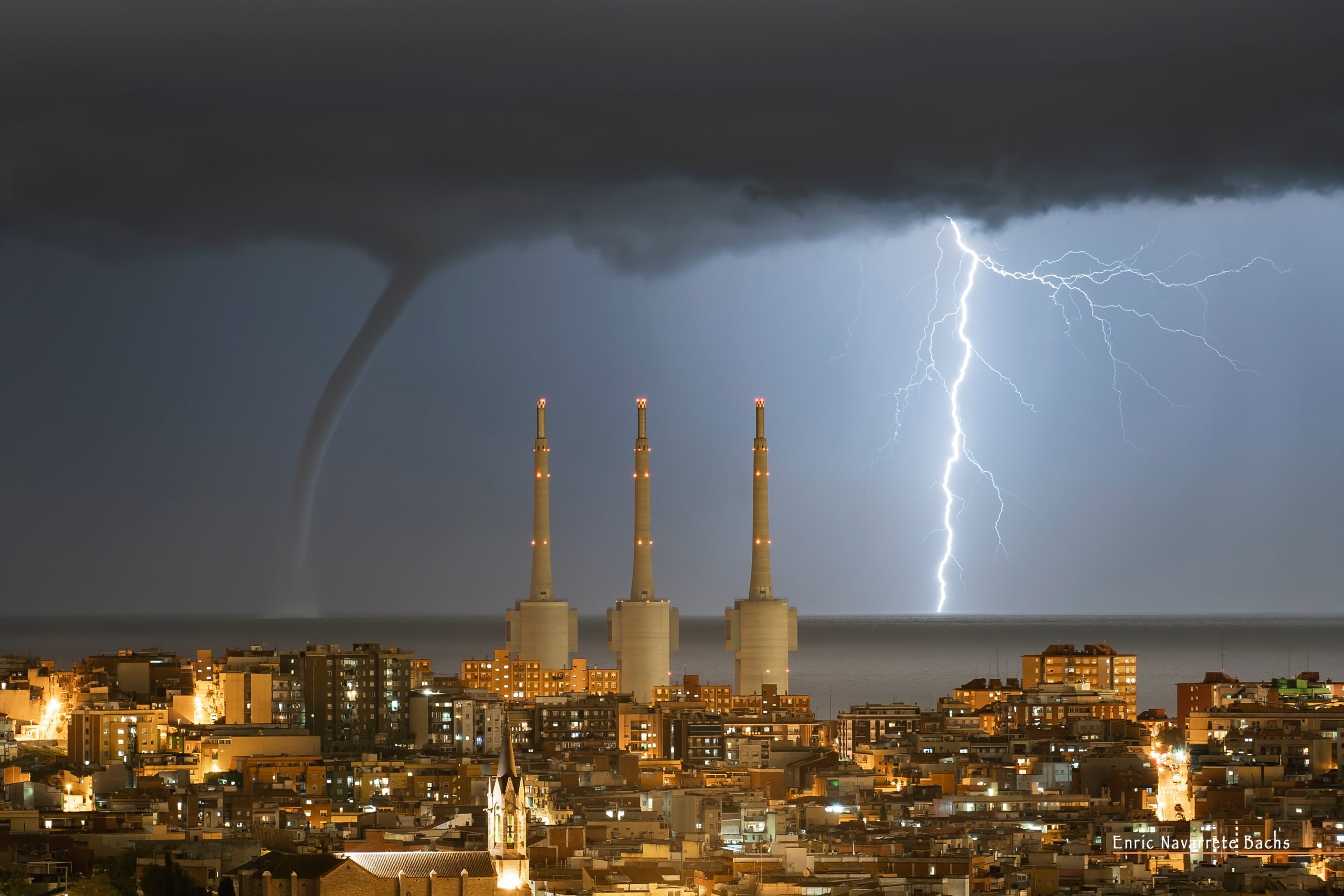 L’espectacular tempesta elèctrica d’aquest dijous al vespre ha permès veure amb una claredat inusual les mànegues marines davant de la costa barcelonina. La mànega, ubicada davant de Badalona, ha estat captada per diversos usuaris, que han penjat fotografies i imatges a Twitter.
