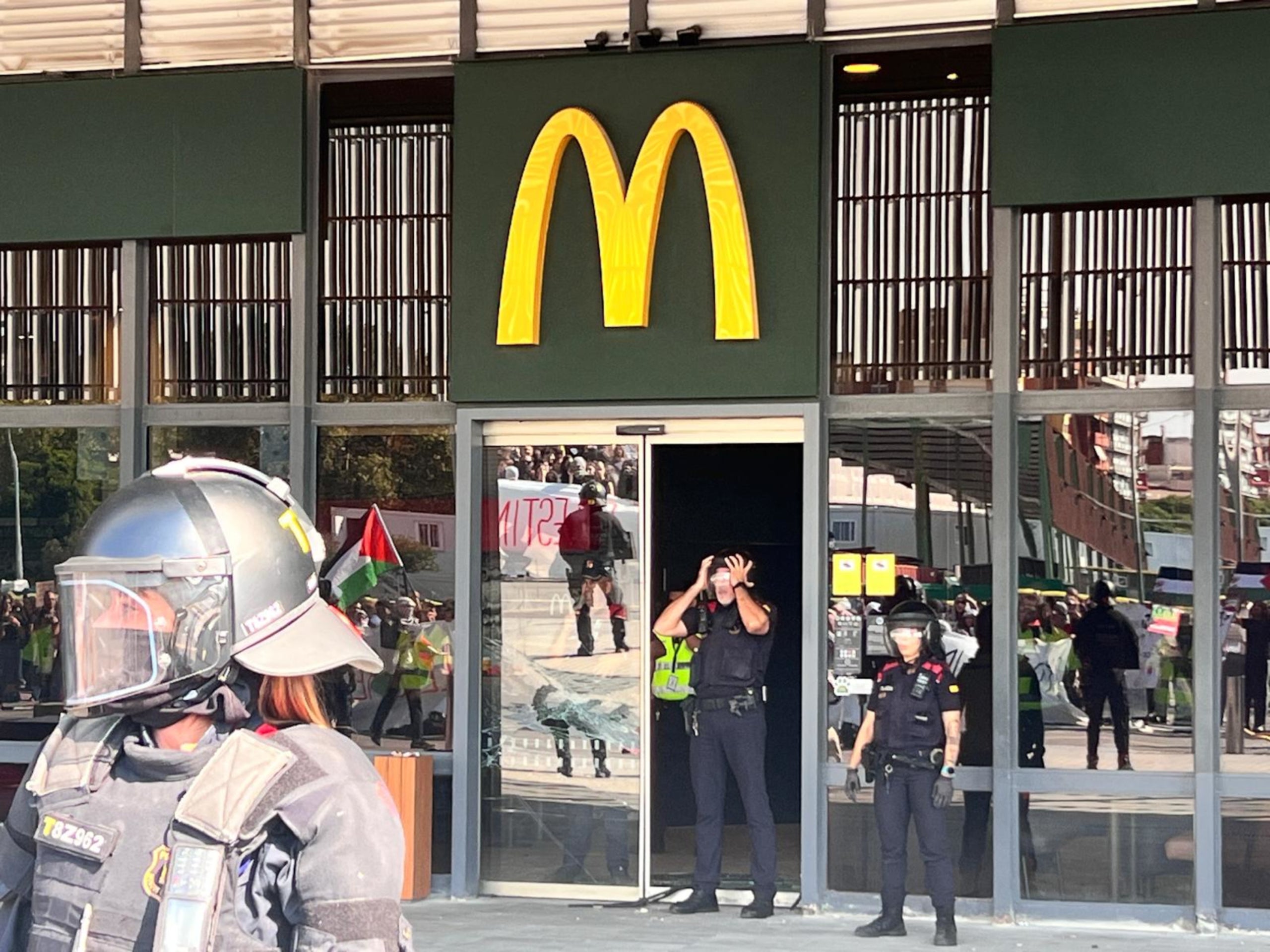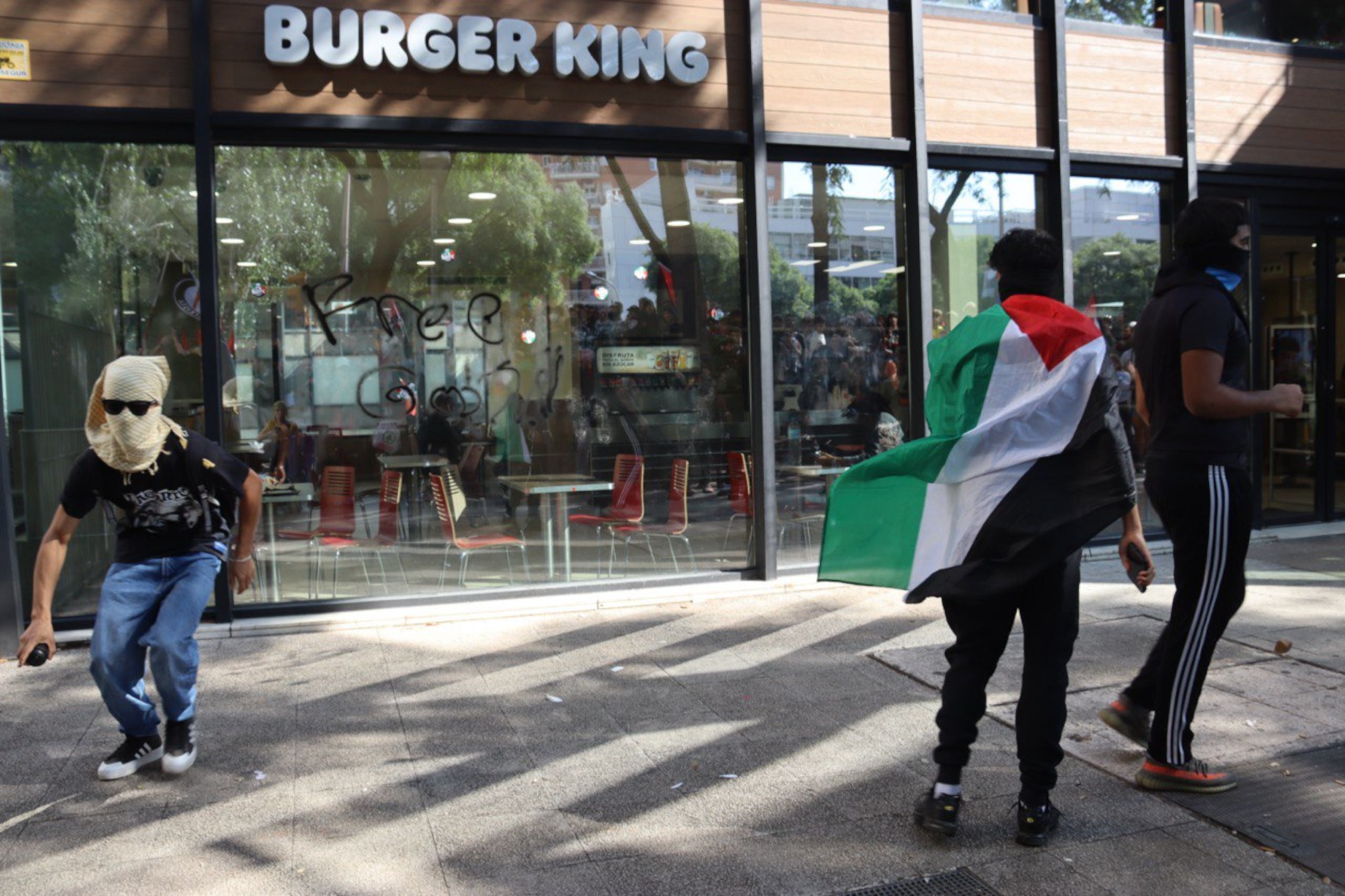 La multitudinària manifestació d’estudiants amb motiu de la vaga per Palestina ha viscut moments de molta tensió quan la marxa ha arribat a l’Estació de Sants, on els esperaven els Mossos d’Esquadra. Un grup de joves ha atacat un Burger King del carrer Tarragona i el McDonald’s que hi ha a l’estació, moment en el qual els agents antiavalots de la Brigada Mòbil (Brimo) s’ha activat per intentar dispersar els manifestants. Els joves els han llençat objectes i alguna tanca de les obres de remodelació de l’estació i finalment els agents han decidit retrocedir. Una estona després han fet un segon intent de dispersar la marxa i han començat les corredisses.