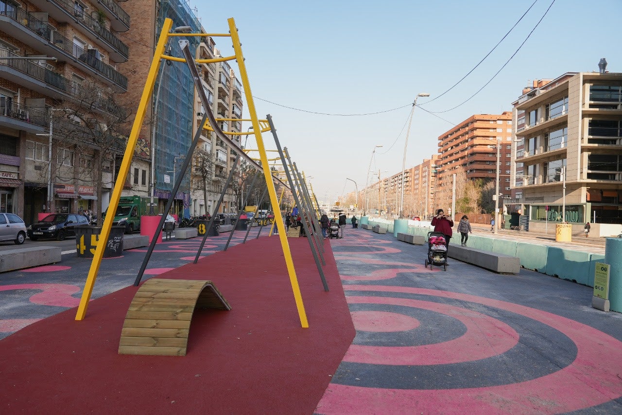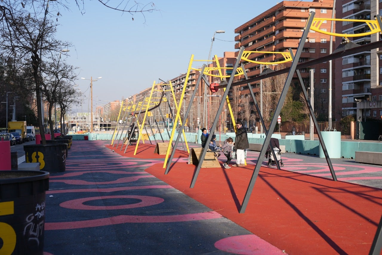 L’arribada del famós túnel de les Glòries ha renovat la imatge de la zona de les Glòries, una de les grans apostes municipals. La construcció del túnel subterrani ha alliberat de vehicles un tram de la Gran Via i el consistori, a l’espera del projecte definitiu, ha optat per pacificar l’espai per on abans entraven els vehicles per “dotar-la d’usos ciutadans i omplir-la de vida”. Una pacificació -popular a les xarxes per les seves particulars pintades a terra- que ha despertat opinions tant a favor com en contra. Ara, el consistori fa un pas més i omple l’espai amb instal·lacions esportives i nous elements de joc.