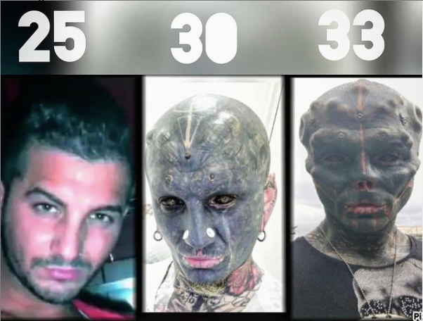 Aquest alien no és més que Anthony Loffredo, un francès de 31 anys que té com a objectiu vital modificar el seu cos per transformar-se en extraterrestre (almenys per fora). S’ha tatuat tot el cos, s’ha seccionat la llengua per convertir-la en bífida i s’ha fet treure les orelles i part del nas.