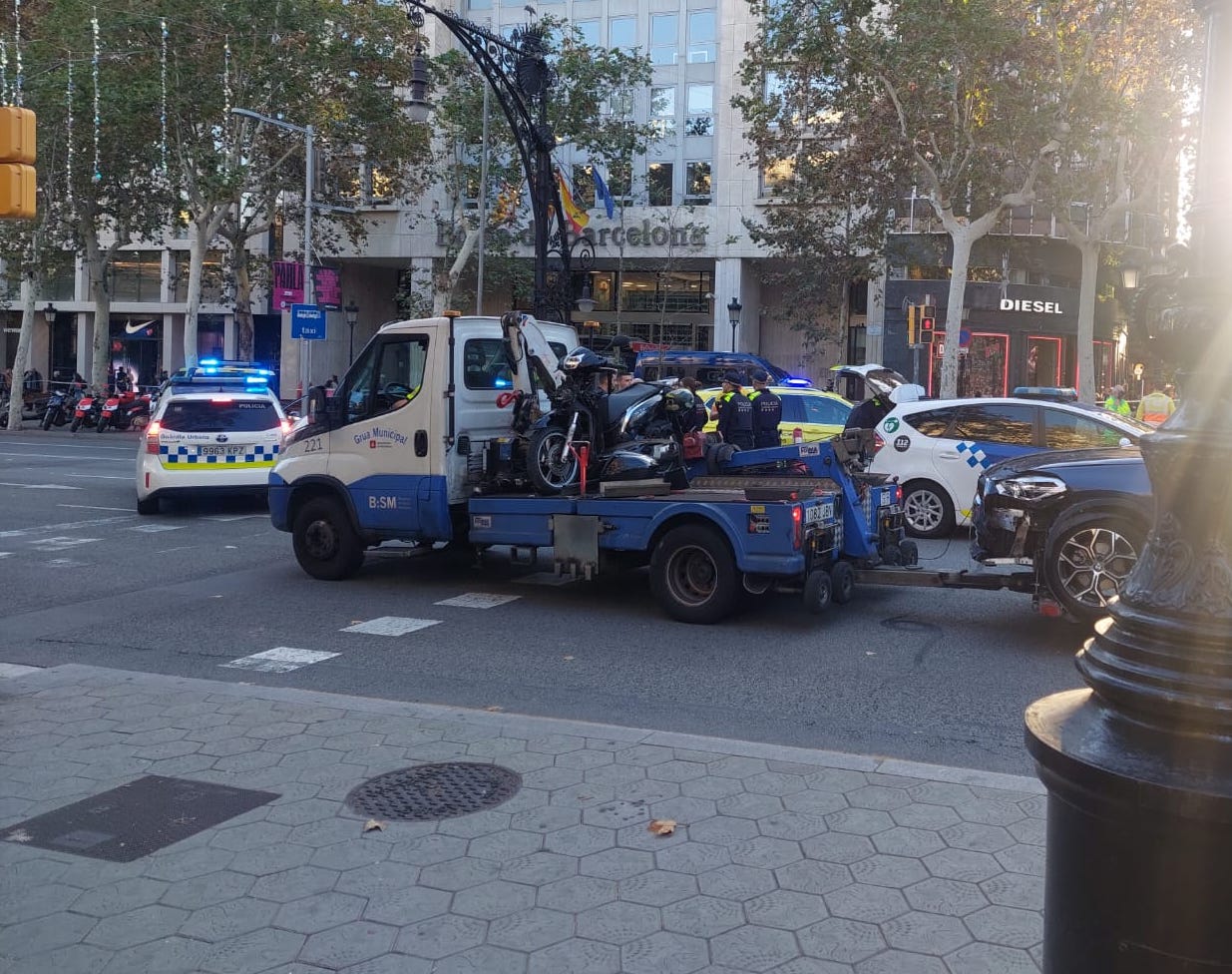 Un motorista, en estat greu després d’un accident al passeig de Gràcia