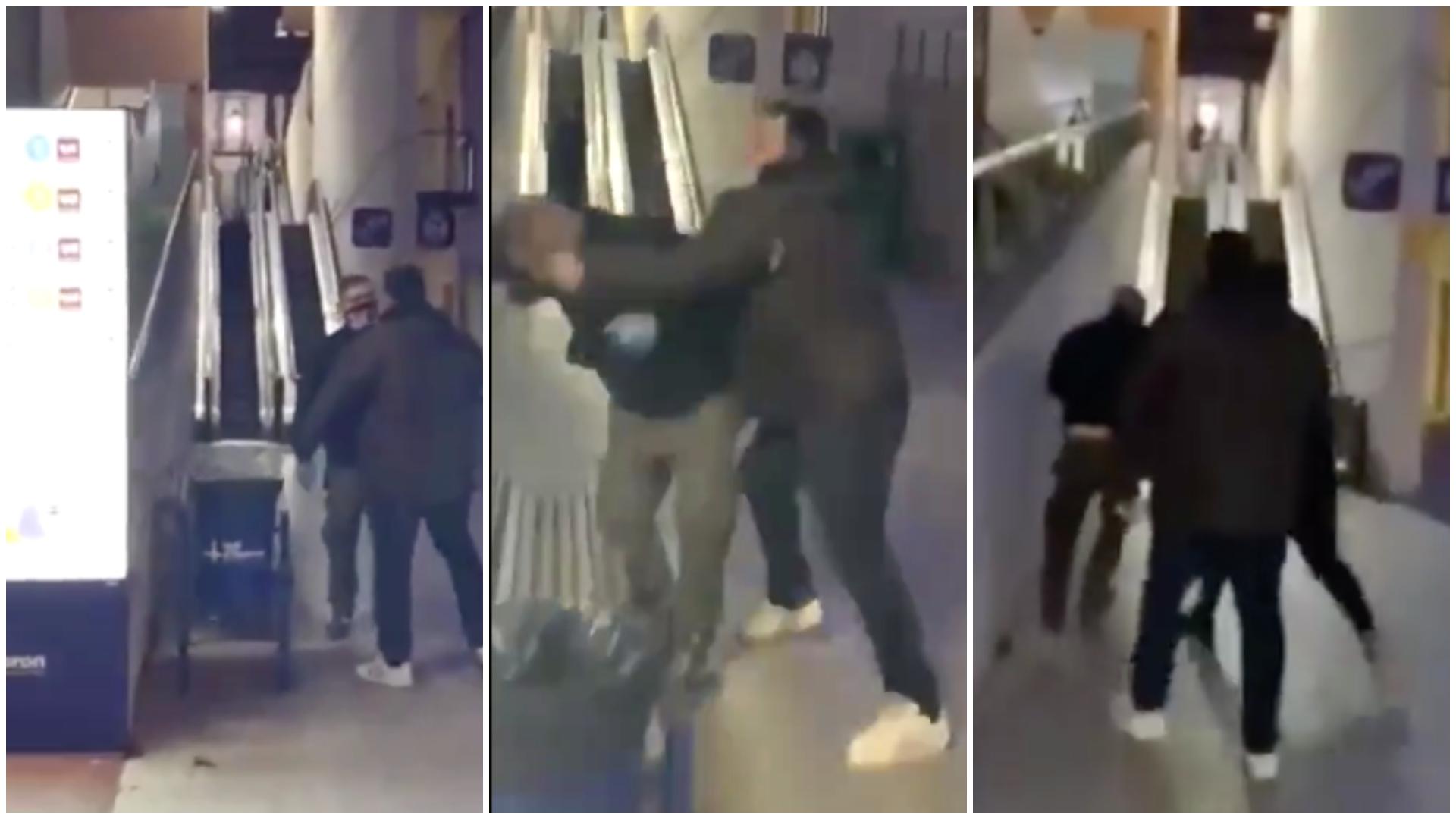 En una segona gravació s’observa com les bengales disparades, amb el seu característic fum vermell, acaben també a l’entrada de l’estadi.
