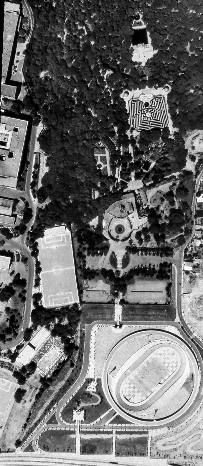Una de les decisions principals del projecte arquitectònic va ser tancar el recinte amb un pòrtic circular que permet una simbiosi 360º amb l’entorn: l’edifici té la mateixa forma vist des de tots els angles. Aquesta forma, a més, permet cobrir-lo amb una cúpula.