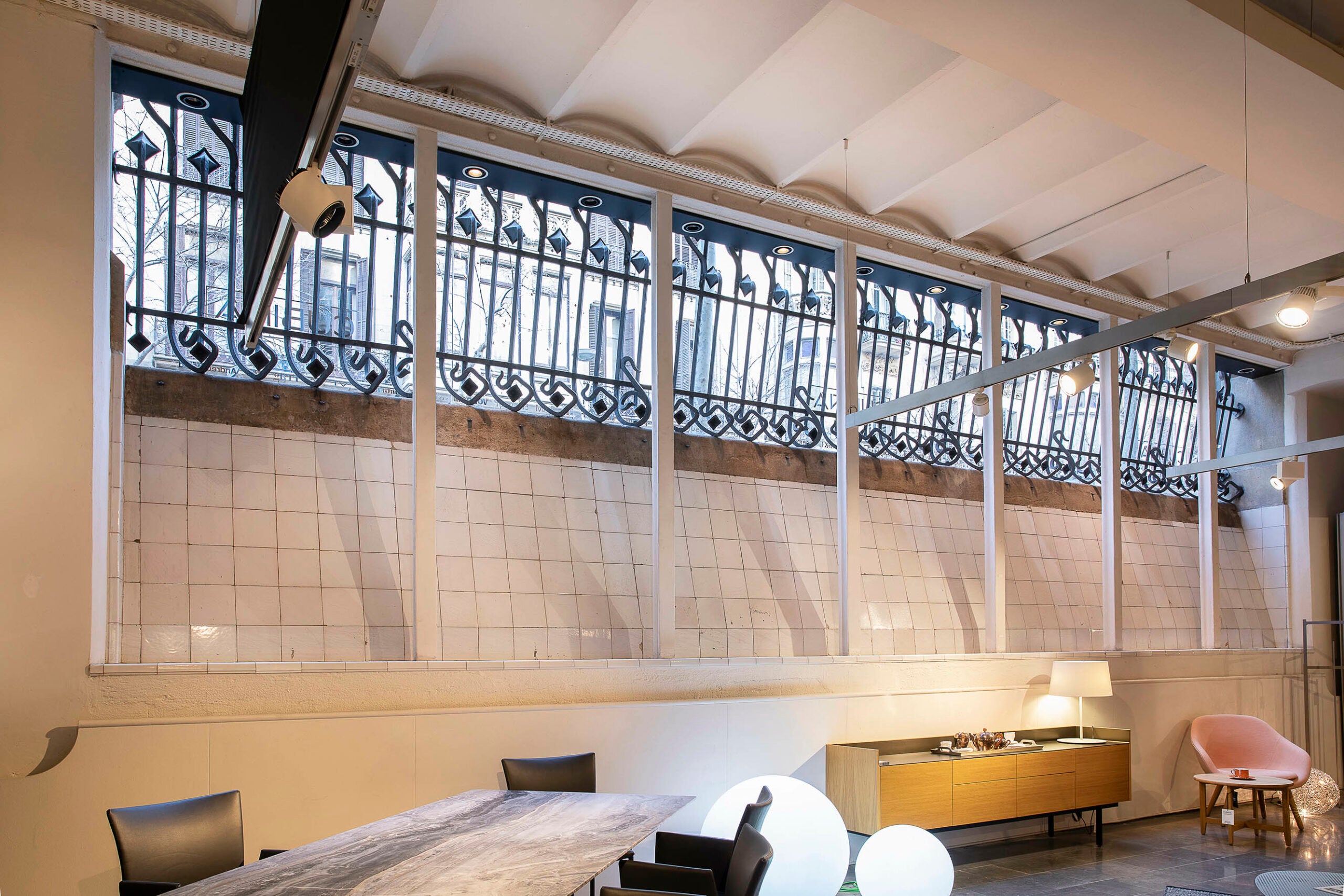I per protegir la gran vitrina-aparador i la reixa modernista de l’exterior, van idear una lluna de vidre sobreposada, una solució econòmica i pragmàtica que ha resultat molt efectiva. Avui aquesta botiga excepcional de més de 1.500m2 continua sent una referència en disseny: l’ocupa la firma Cubiñá, vinculada des de fa un segle a la ciutat i al mobiliari contemporani.